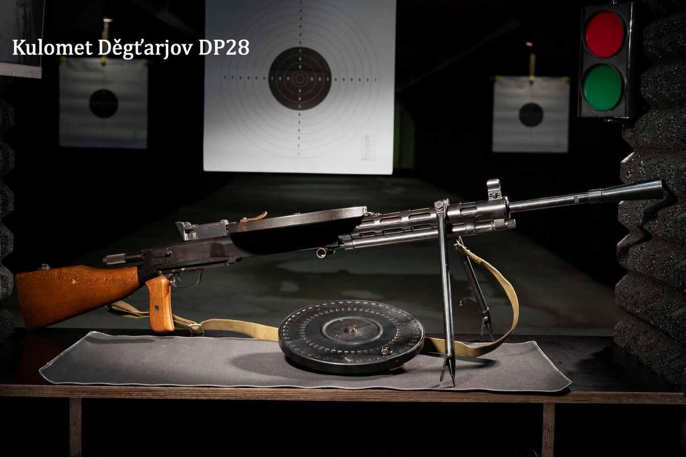 - Kulomet Degtjarjov DP-28 – klasický lehký kulomet s charakteristickým diskovým zásobníkem, který poskytoval palebnou převahu pěchotním jednotkám Rudé armády už ve druhé světové válce. Díky spolehlivému mechanismu a solidní přesnosti zůstal v aktivní službě i dlouho po válce.