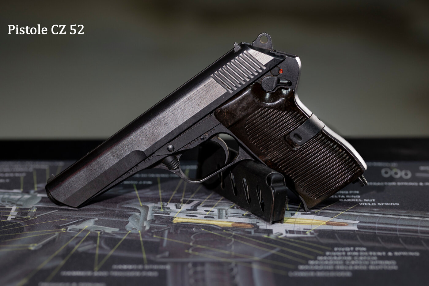 - Pistole vz. 52 – The standard service pistol of the Czechoslovak Army, featuring an unusual design with a rolled butt and a powerful 7.62×25 mm Tokarev caliber.